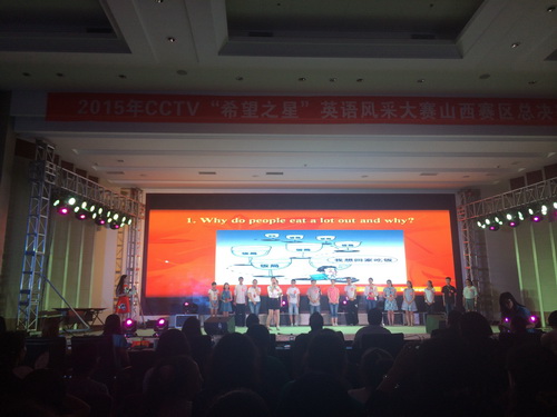 6月5日下午,我校高中学部22名学生、初中学部18名学生在三位老师的带领下抵达太原晋祠, 代表忻州市参加CCTV希望之星2015年山西赛区总决赛。