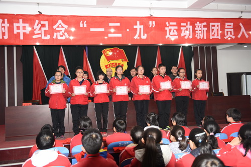 12月9日下午,我校在明德楼七楼会展中心举行纪念“一二•九”运动80周年新团员入团宣誓仪式暨中华魂主题演讲征文比赛颁奖仪式。学校副校长、党总支副书记张震宇、政教处主任郭永茂、工会主席梁莹、团委书记王蕾、政教处副主任王琅琅、校团委副书记陈涛出席了仪式。会议由校团委副书记陈涛主持。