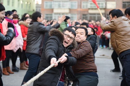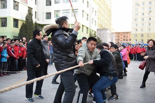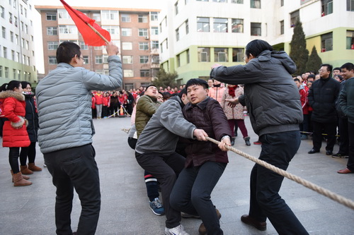 2016年1月11日至14日由我校工会组织的教职工拔河比赛在喷泉广场举行。按照比赛规定,全校共分八个小队,每队派出男教工6名、女教工9名,共15名教工参加比赛。