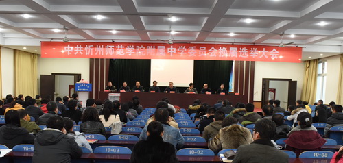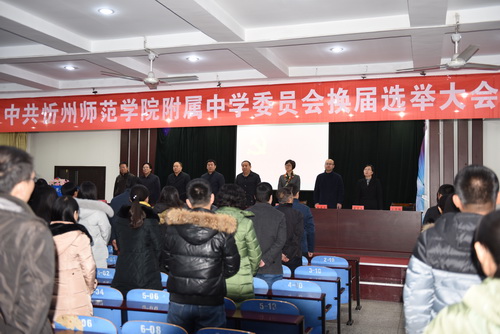 会议按既定程序顺利进行并圆满结束。会上,谢晓丽同志受上届党委委托向大会作了题为《廉洁务实 做教职员工表率  担当创新 做附中发展先锋》的工作报告,报告详细总结了党委过去几年的工作,并明确提出了今后工作的总体思路和目标要求。全体党员审议并表决通过了《中共忻州师范学院附属中学委员会党员大会选举办法(草案)》和监票人、计票人人选。会议选举出王蕾、刘卫忠、刘全科、宋云峰、张震宇、李翠英、谢晓丽(按姓氏笔画为序)7人为新一届党委委员。